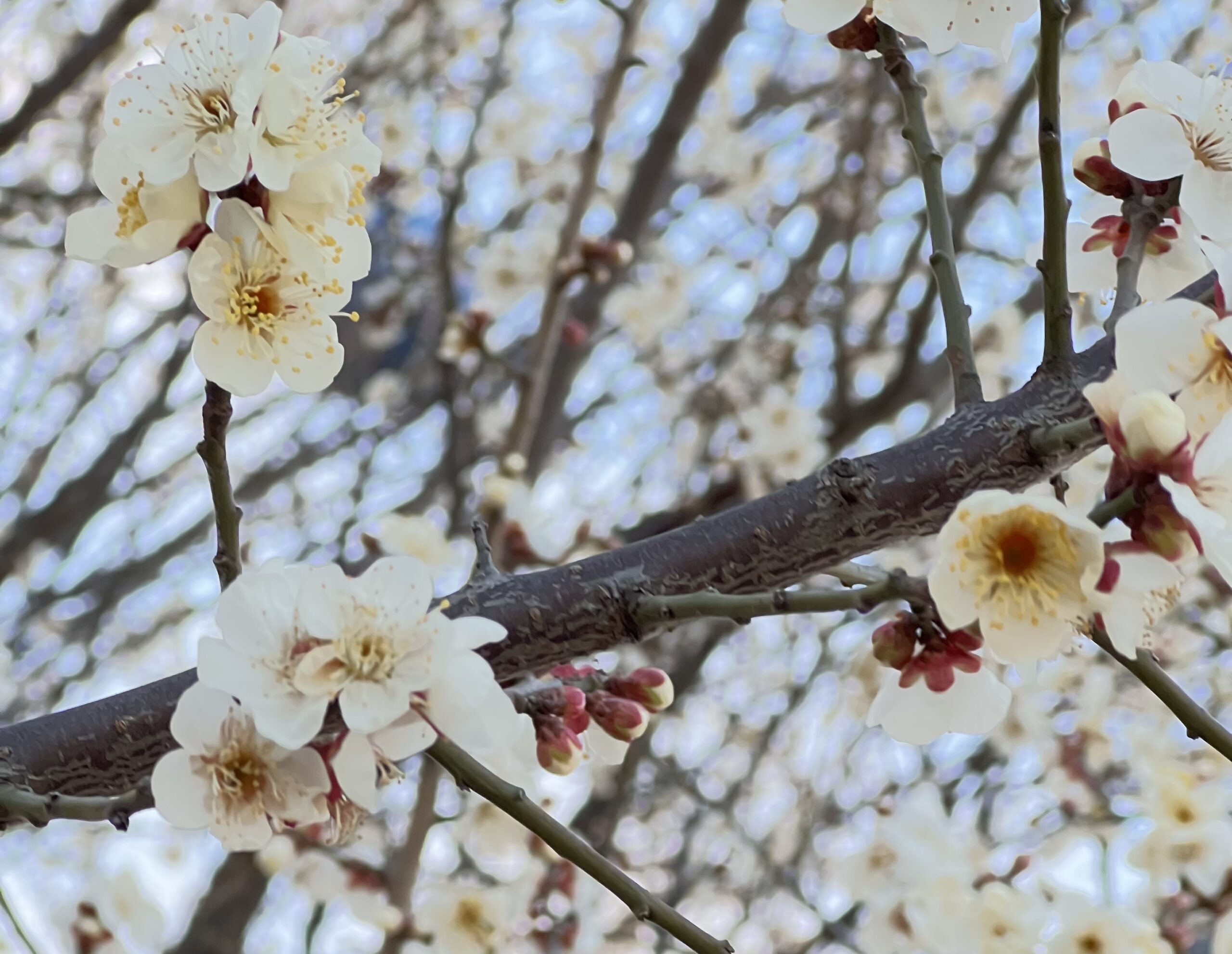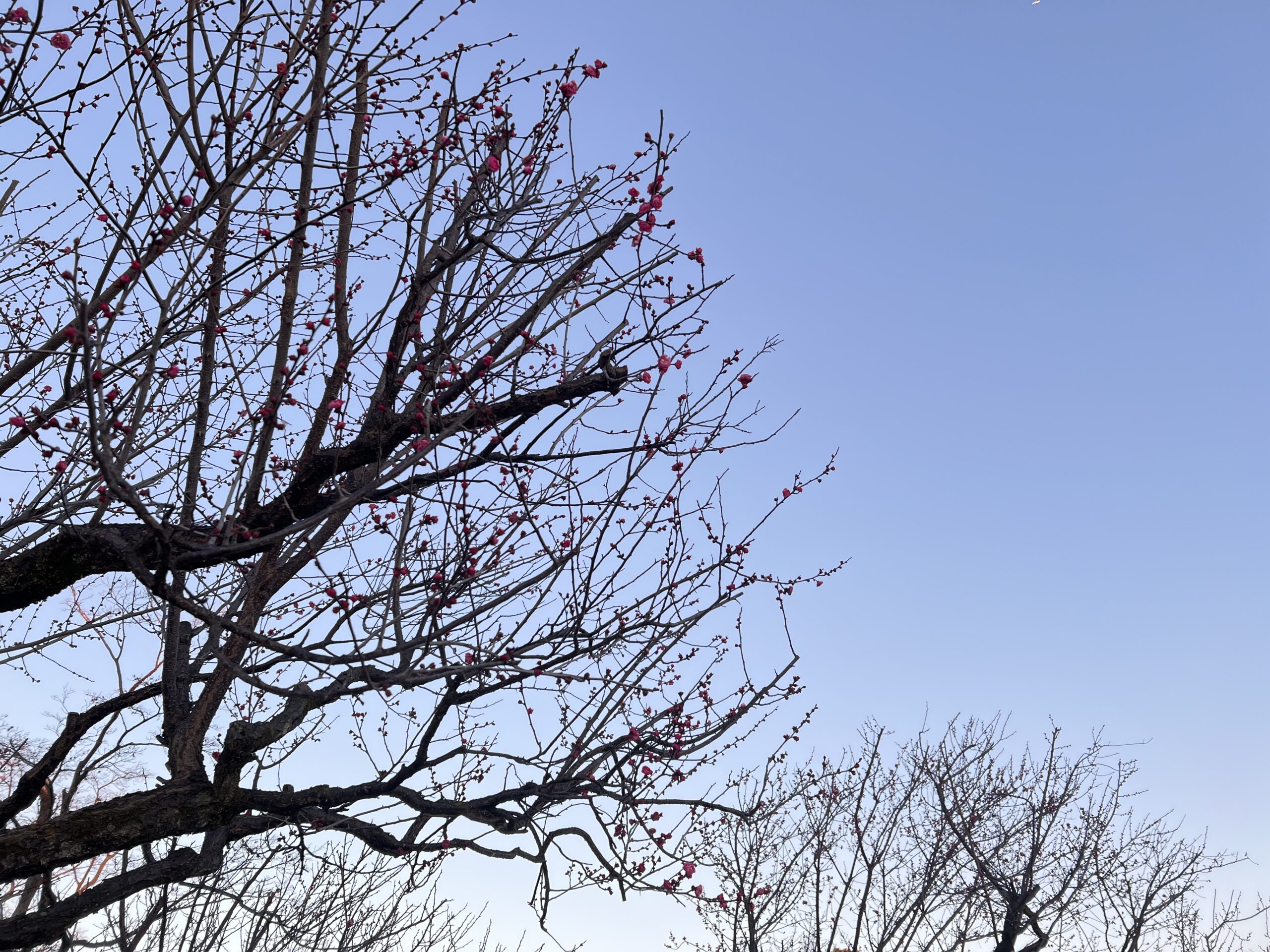 朝散歩途中で見かけた梅の花はすでに満開で
