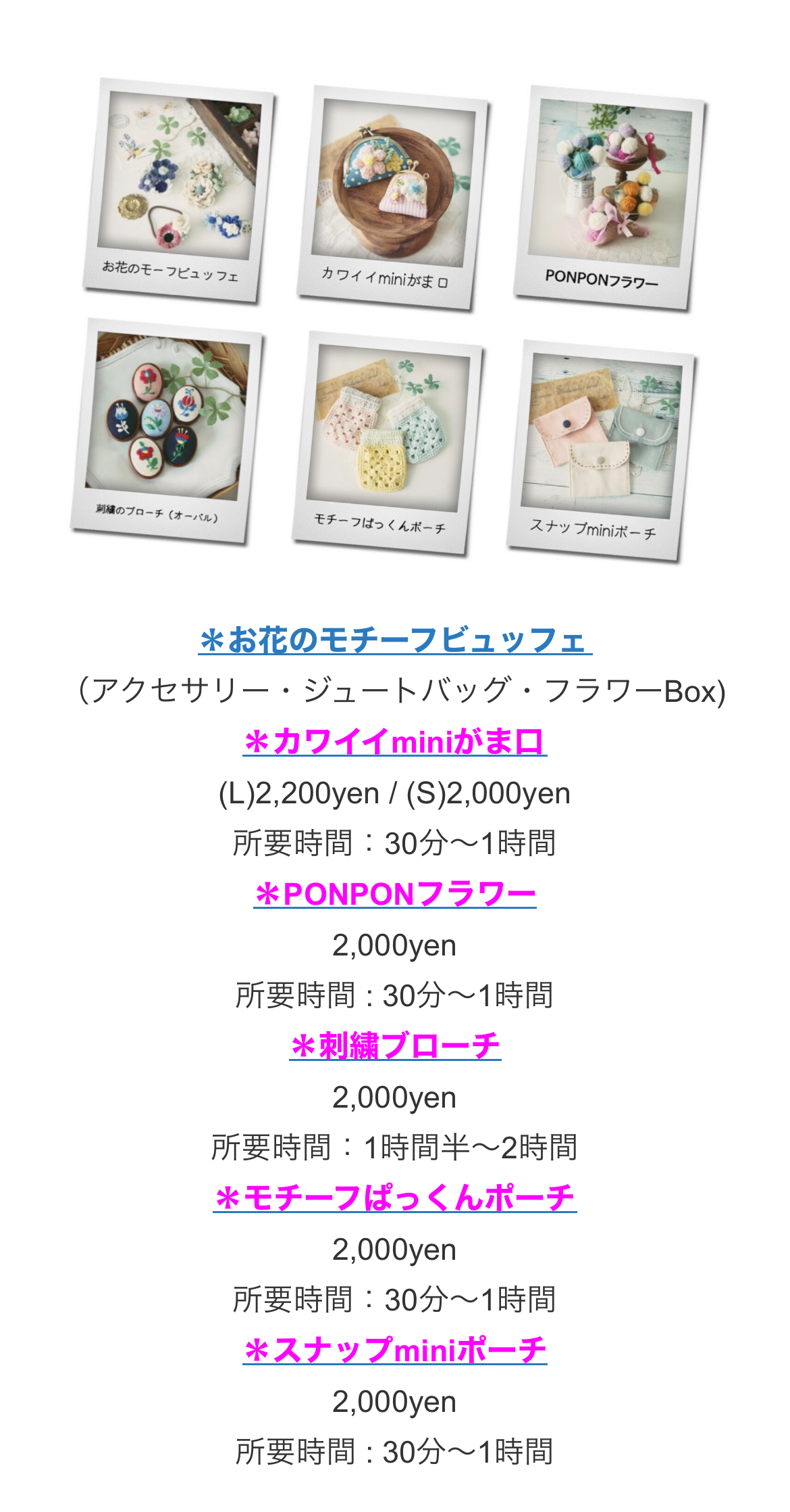 全て予約不要です。