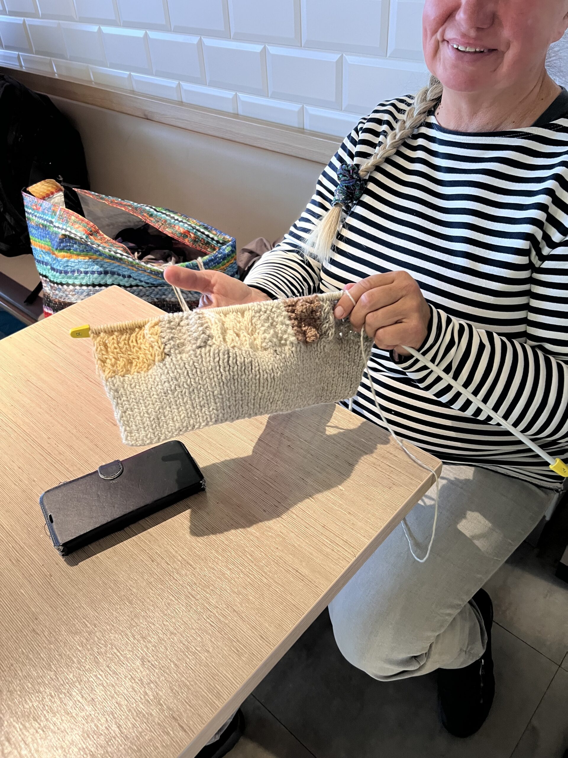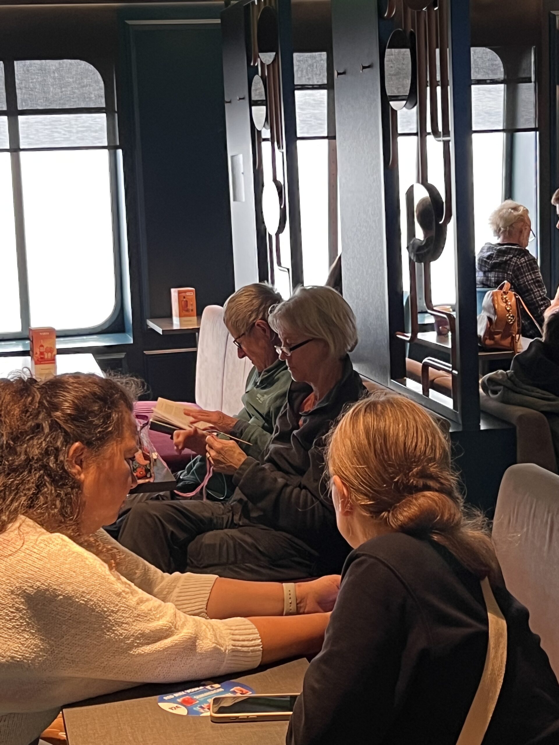 船内で編み物をしている人複数発見!